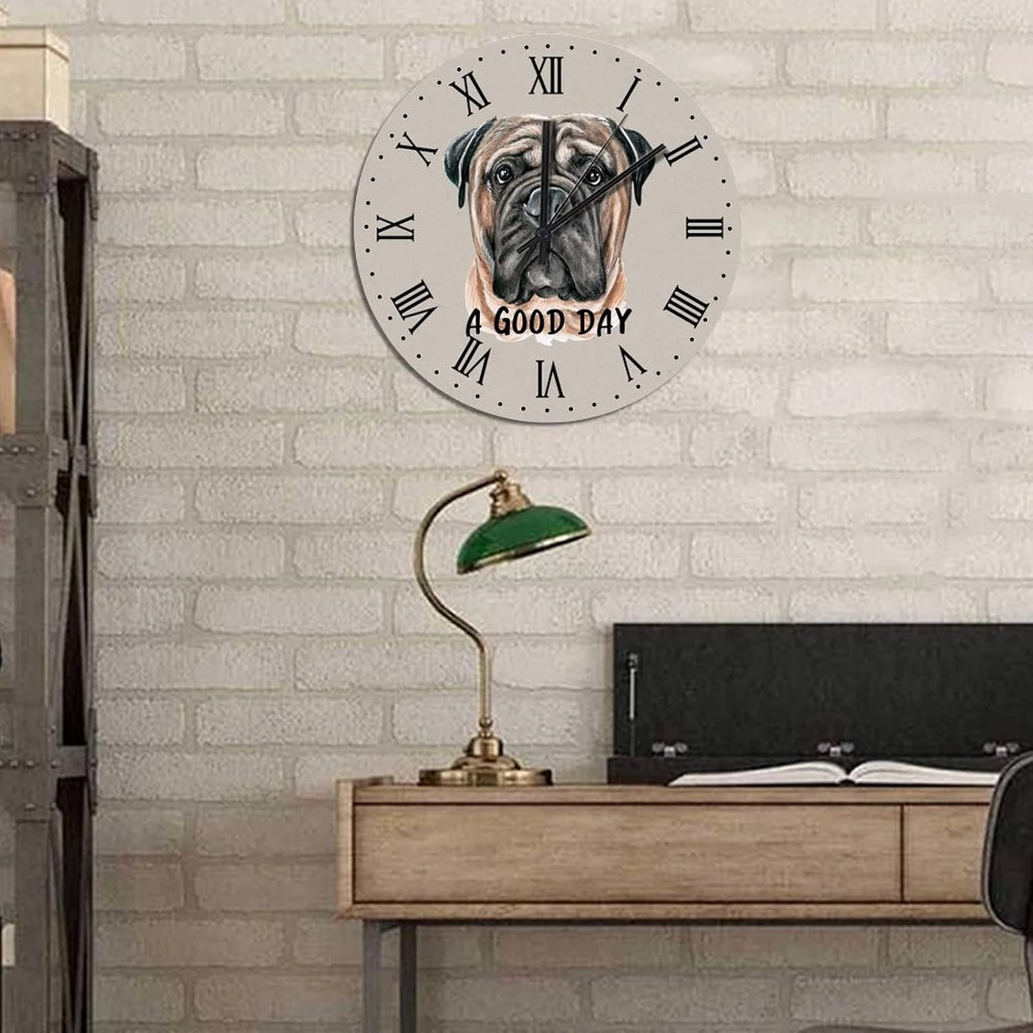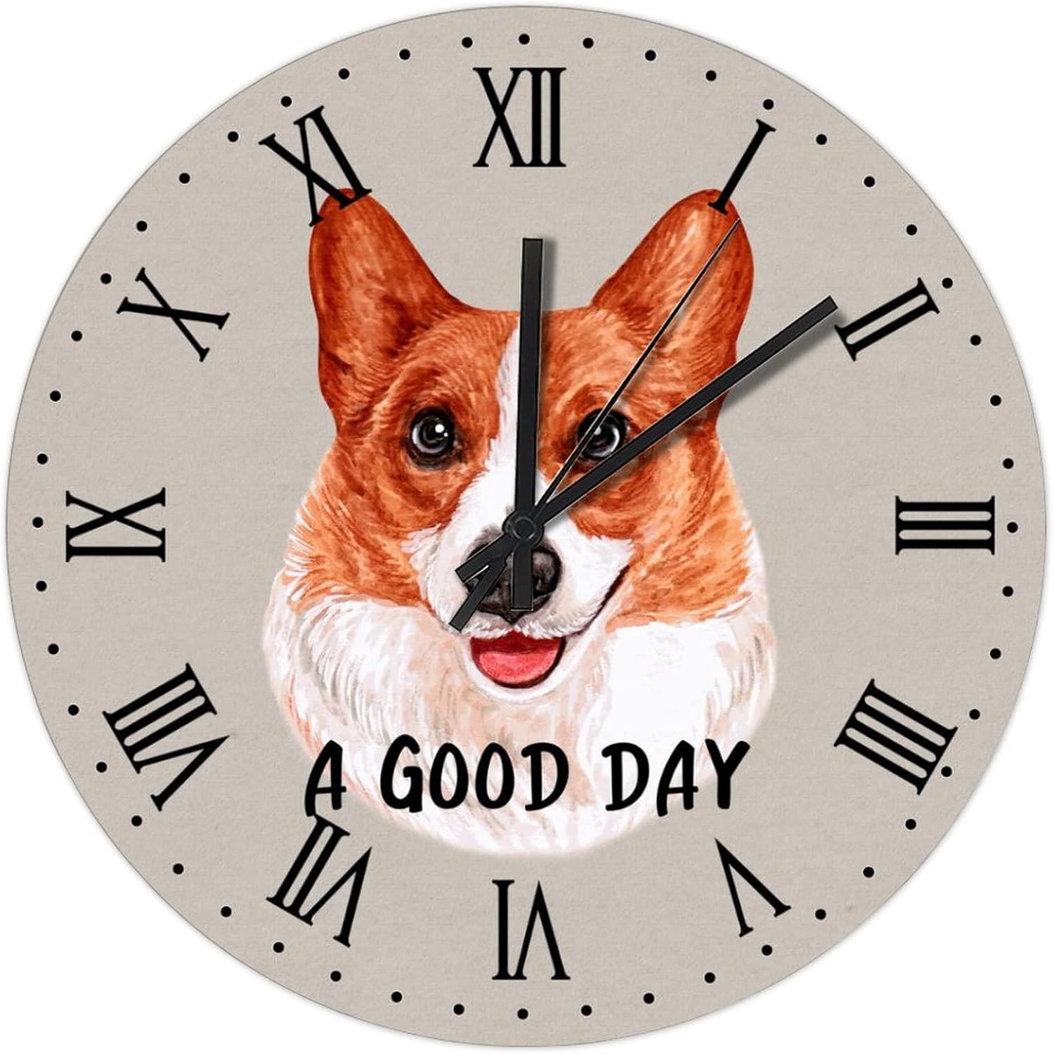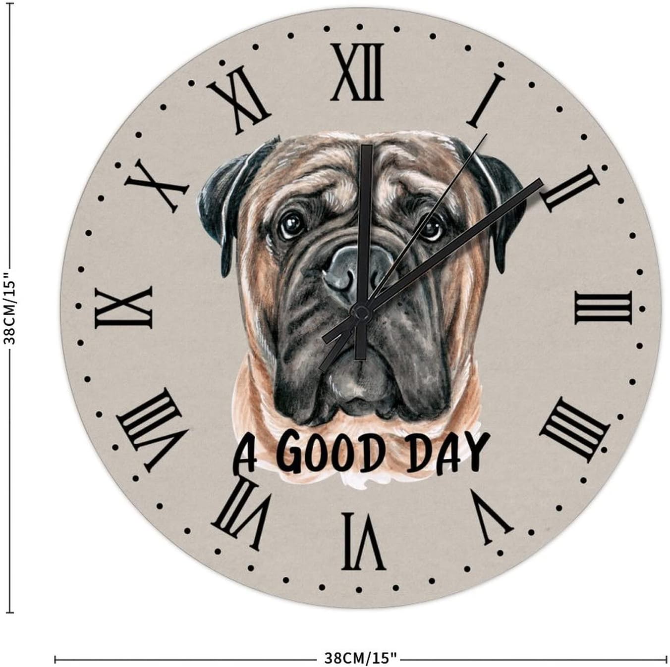 BESTORLOVE A Good Day Dog Wooden Clocks, Roman Numerals Silent Non-Ticking Wood Wall Clock, 15″ x 15″ Round Wall Clock Decor for Home Living Room Bedroom Office Ship from US