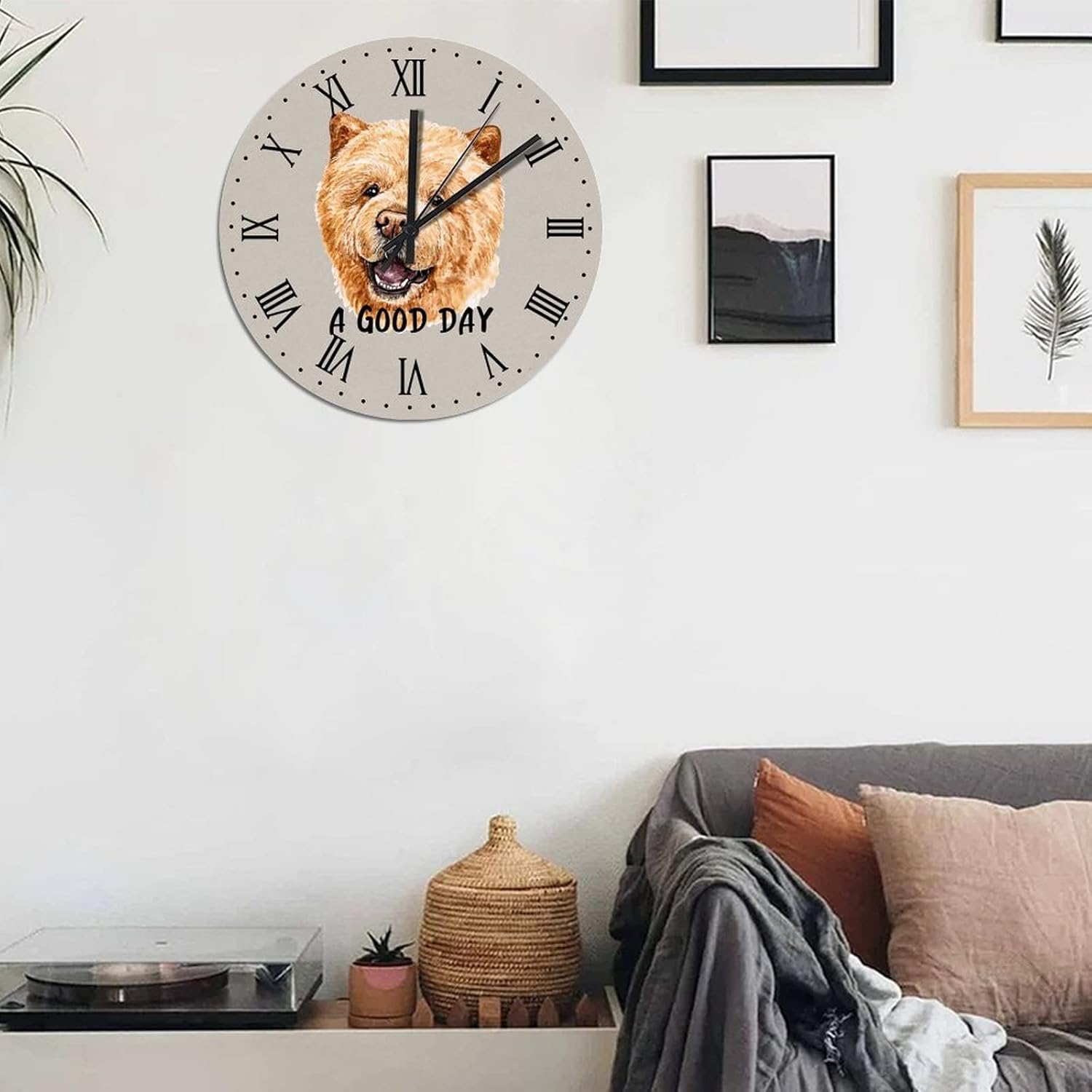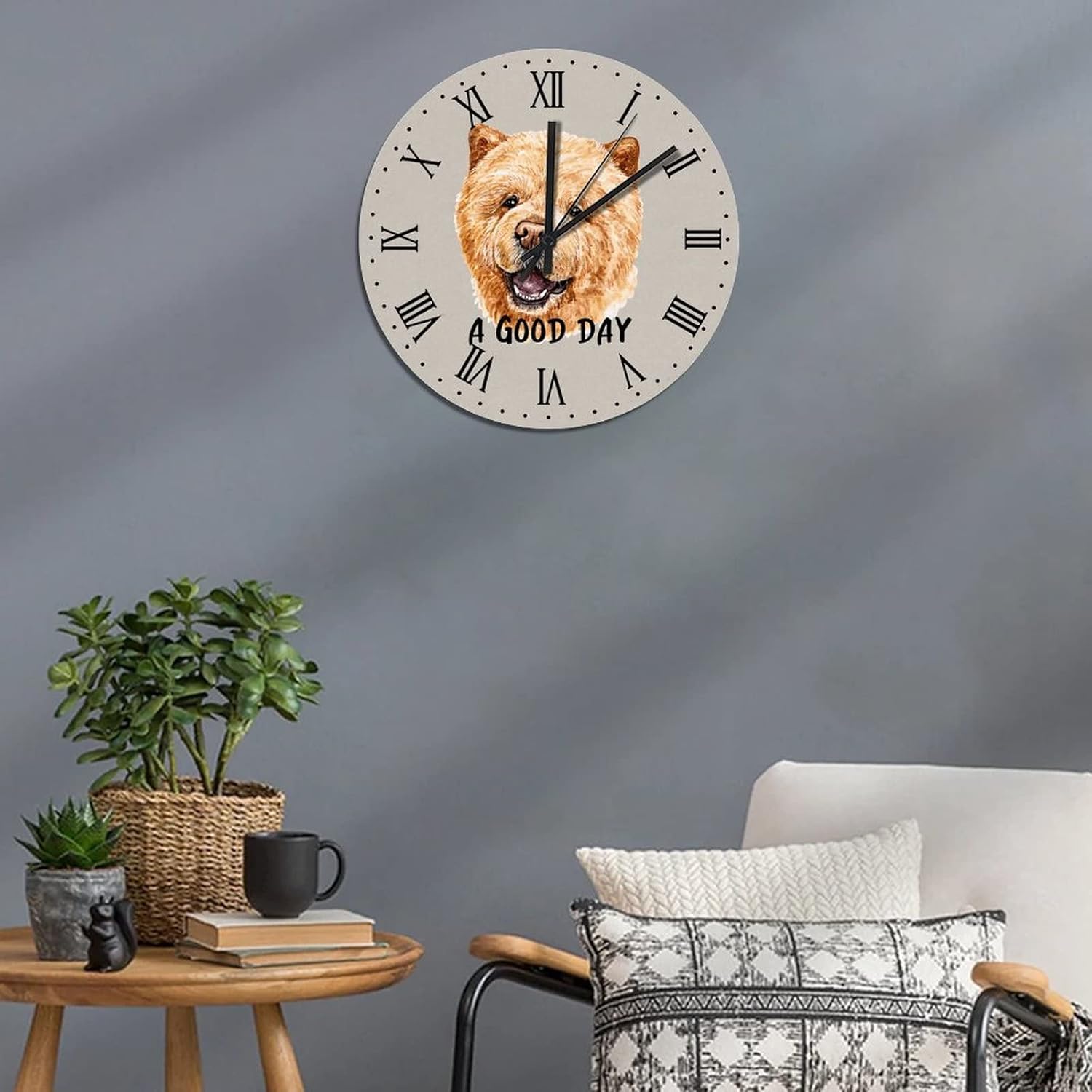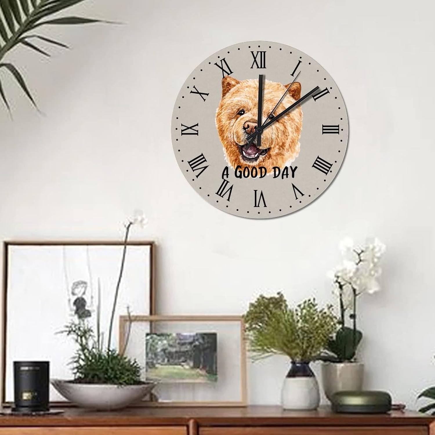 BESTORLOVE Cute Silent Non-Ticking Wood Wall Clock A Good Day Dog Wooden Clocks 15″ x 15″ Round Wall Clock for Living Room Bedroom Home Decorations Ship from US