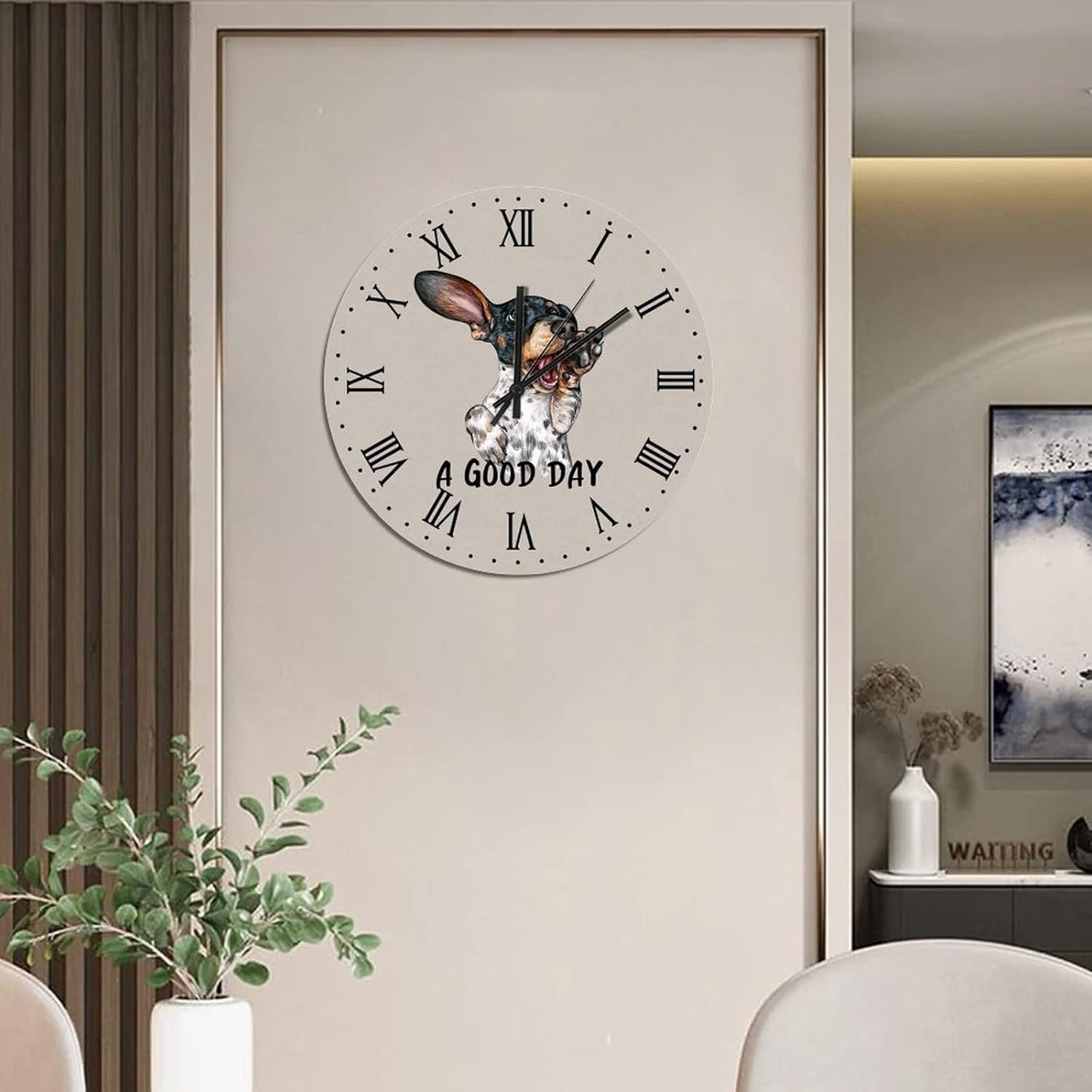 BESTORLOVE Dog Wooden Clocks A Good Day Dog Wood Wall Clock Silent Non-Ticking 15″ x 15″ Round Wall Clock Decor for Home Living Room Bedroom Office Ship from US
