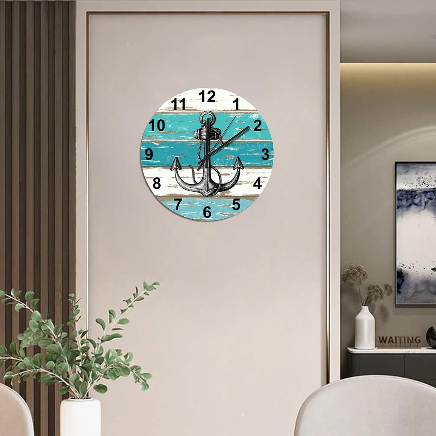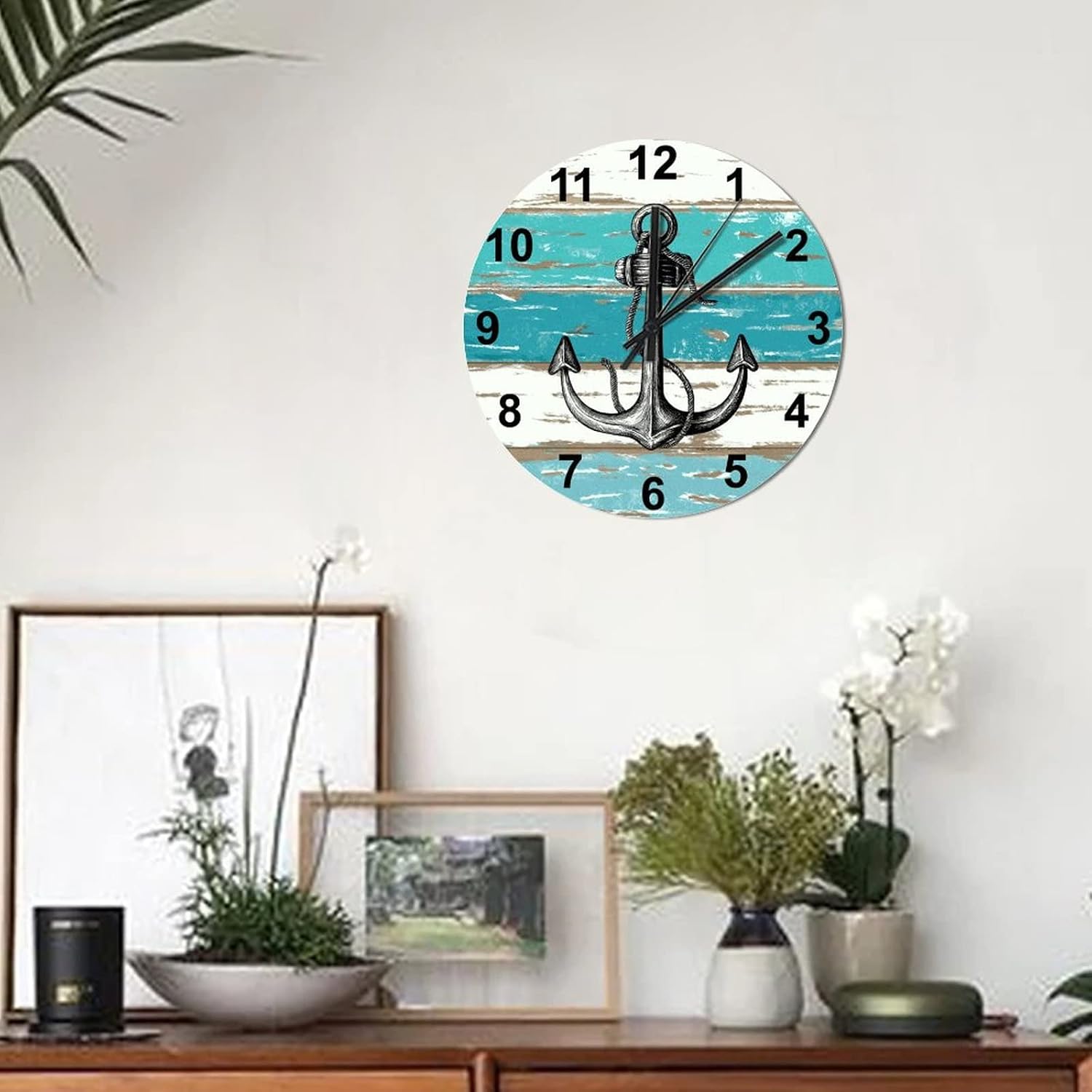BESTORLOVE Good Wood Wall Clock Nautical Round Wall Clock Silent Non-Ticking 12″ x 12″ Wooden Clocks Decor for Home Living Room Bedroom Office Ship from US