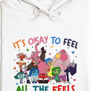Wrap yourself in comfort and colorful emotion with this “It’s Okay to Feel All the Feels” printed hoodie. Featuring a cast of quirky, animated characters each expressing a different emotion, this hoodie delivers both warmth and a heartfelt message. The soft 50/50 cotton-poly blend feels cozy without overheating, while the durable air-jet yarn minimizes pilling. Designed for fans of expressive style and mental health positivity, it’s a go-to favorite for teachers, counselors, students, and anyone who wears their heart on their sleeve (or chest). Makes a thoughtful gift or an everyday self-care essential.