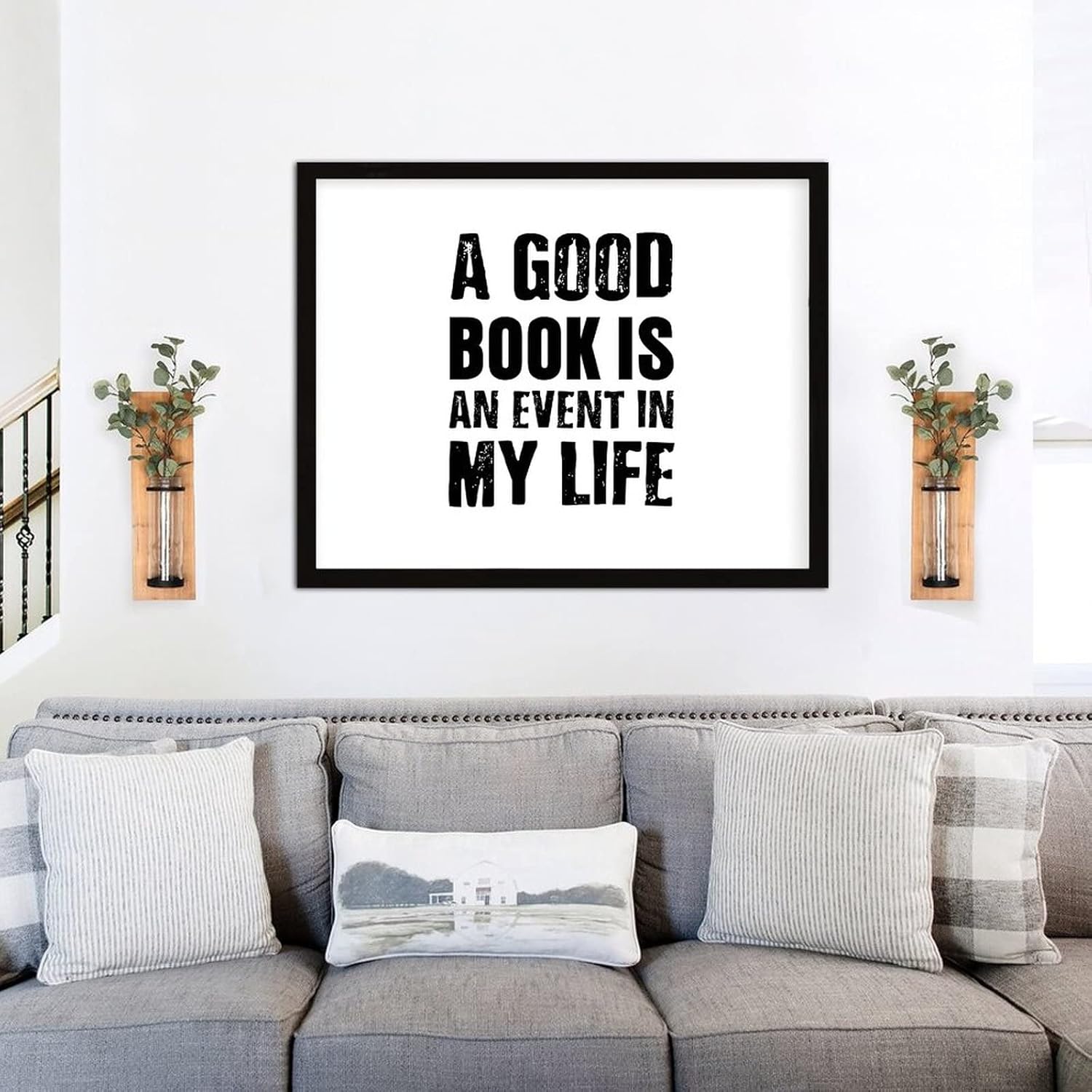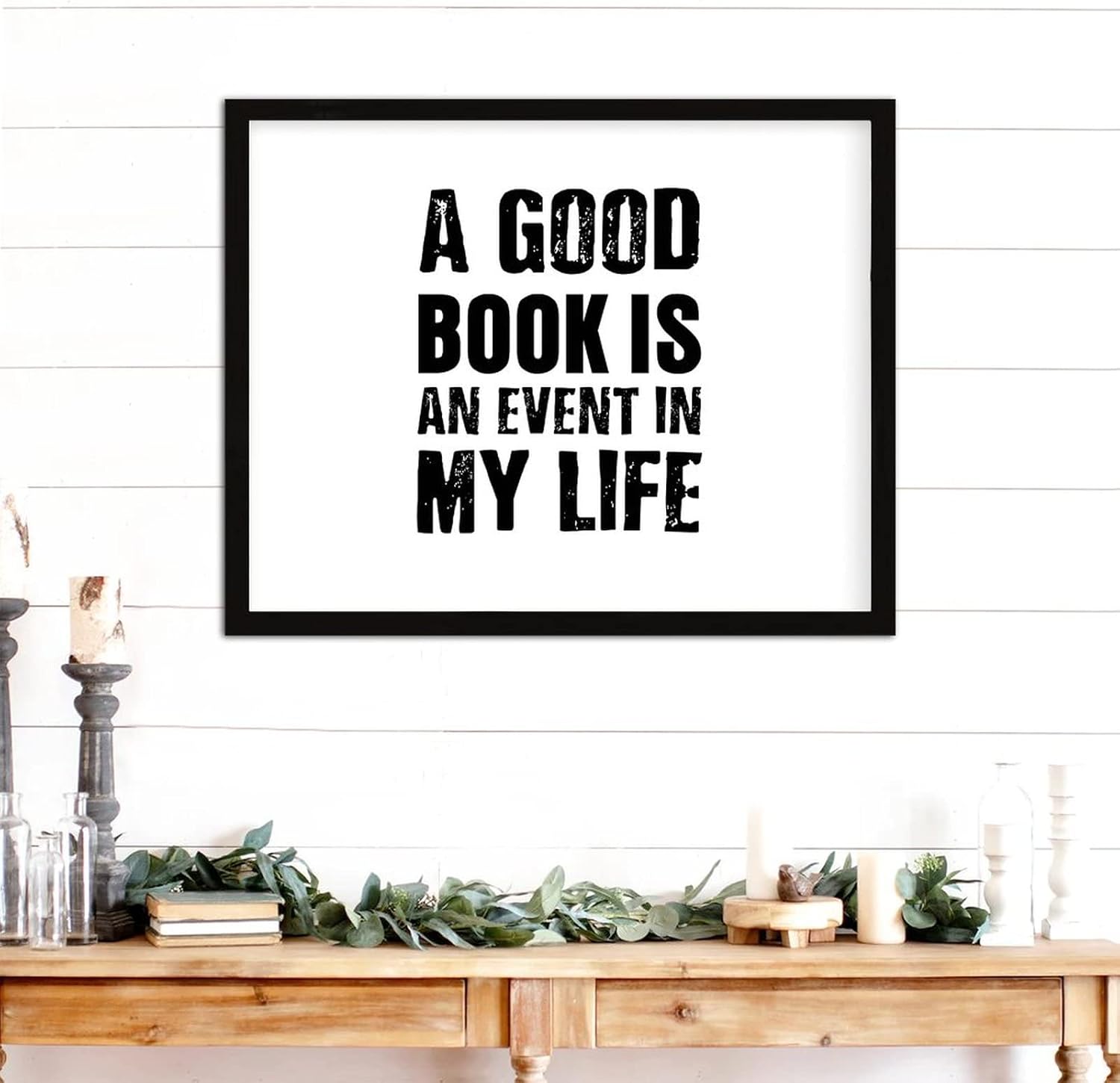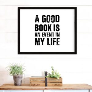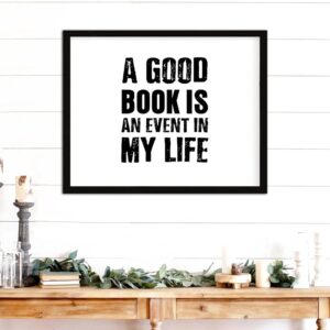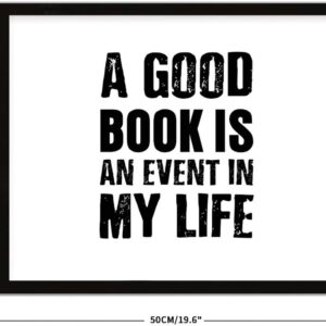 COCOKEN A Good Book is an Event in My Life Wooden Plaque with Frame, Motivational Quotes Sign Wood Framed, 16″ x 20″ Funny Printed Hanging Wall Art Decor for Home Living Room Bedroom