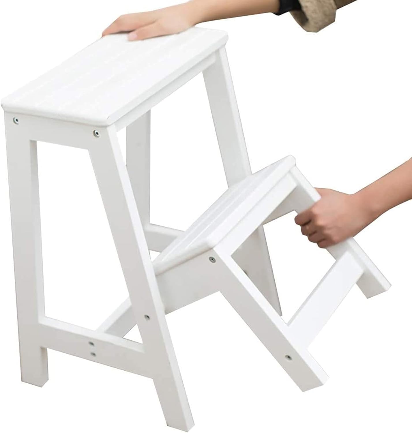 - SPECIAL DESIGN: Wooden stepladder use foldable design, easy to store, not taking up space, ensuring stability on any surface