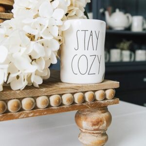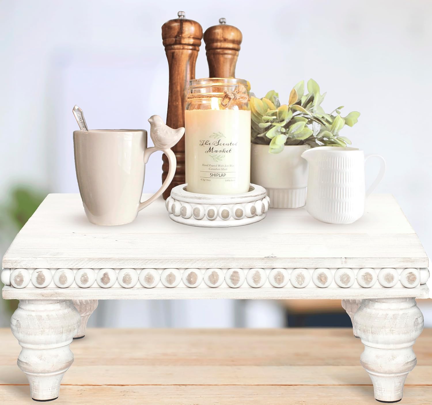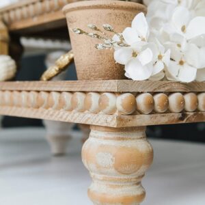 Felt Creative Home Goods Decorative Wood Risers for Decor | Tiered Tray Stand | Farmhouse Beaded Riser Stand for Decor | Wooden Pedestal Stand Large 12×16 Beaded Tray for Kitchen Coffee Bar (Brown)