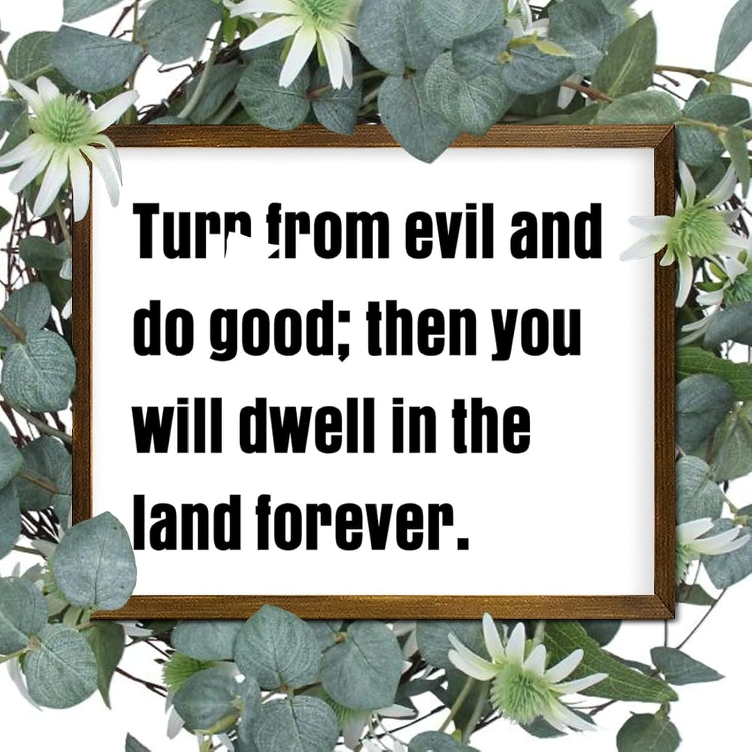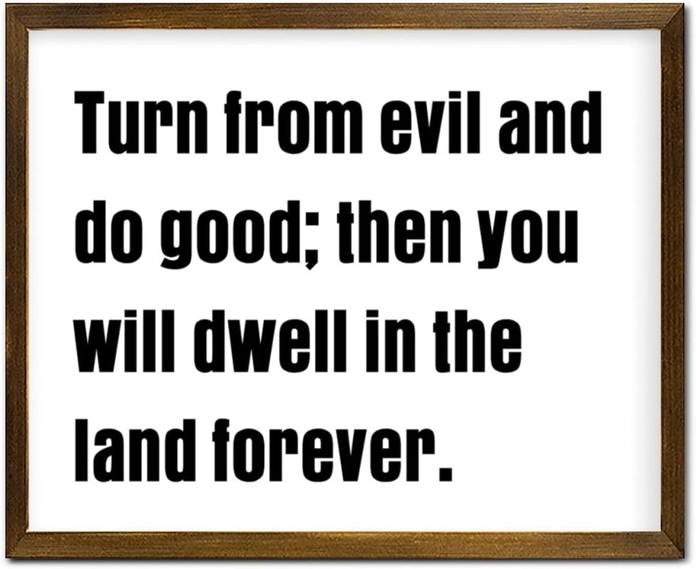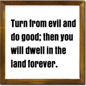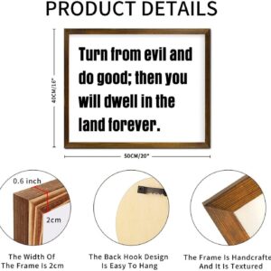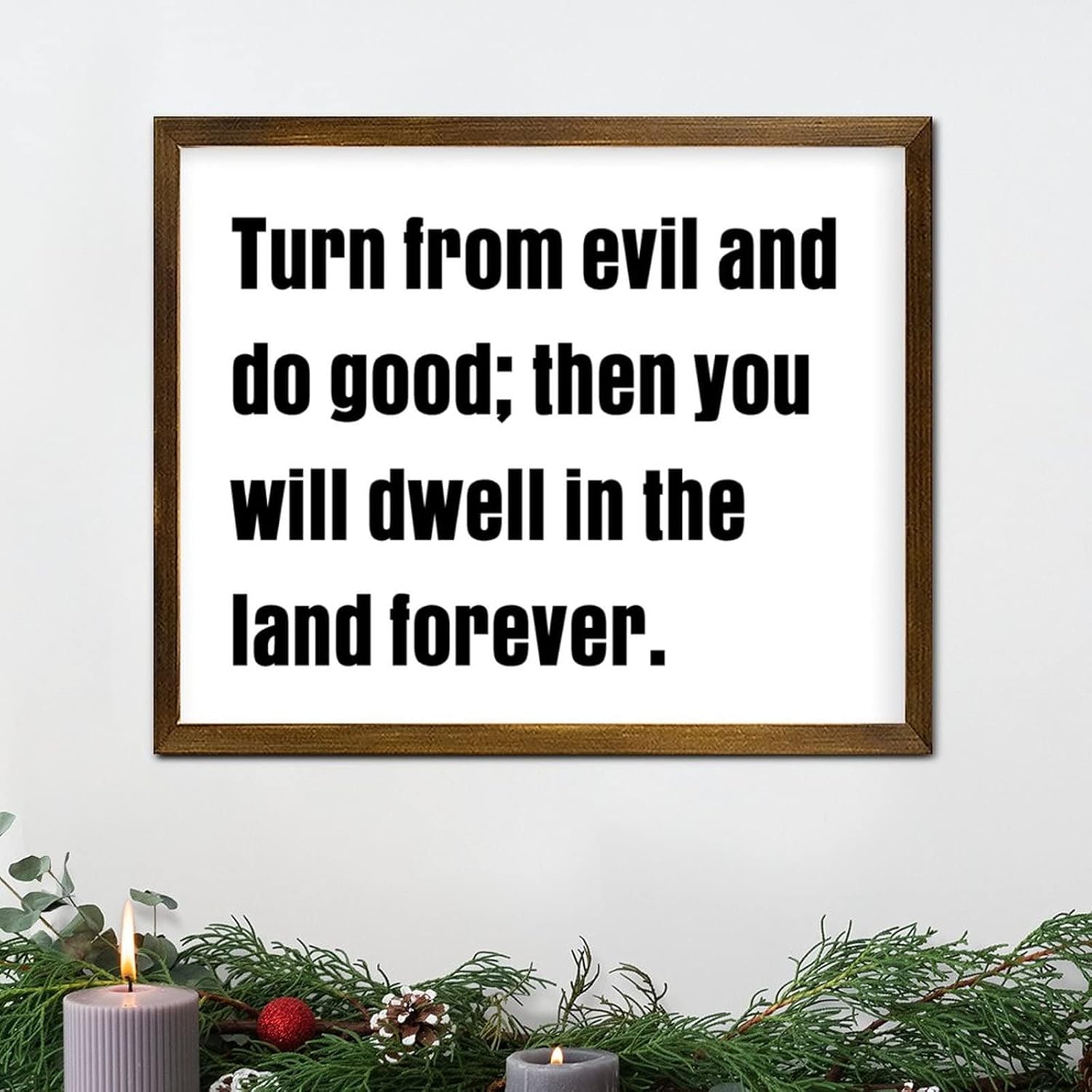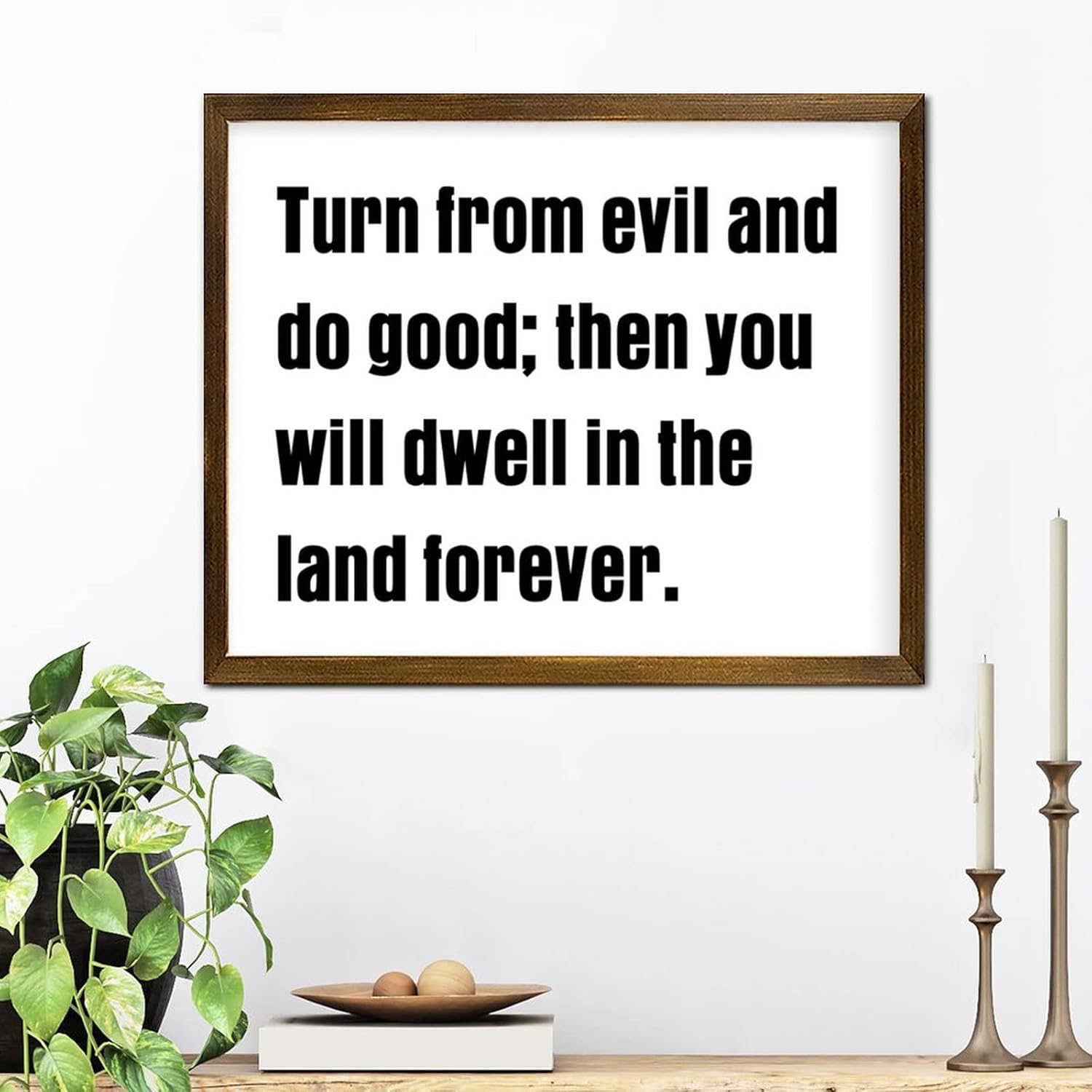 Framed Wood Sign Plaque Turn from Evil and Do Good Then You Will Dwell in The Land Forever Wooden Wall Art Positive Inspirational Quote Wood Framed Sign Family Rustic Home Decorations 16x20in