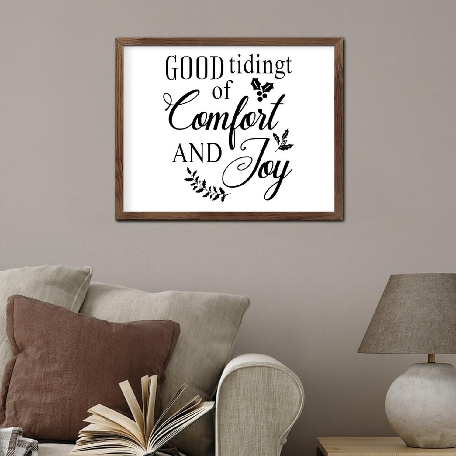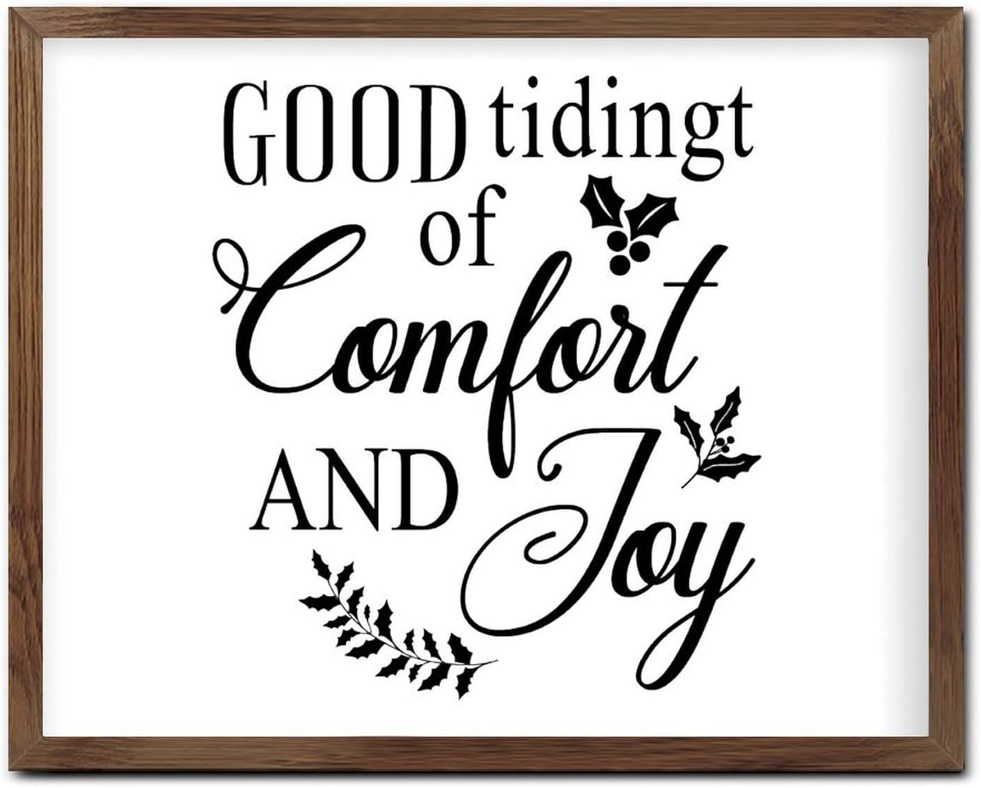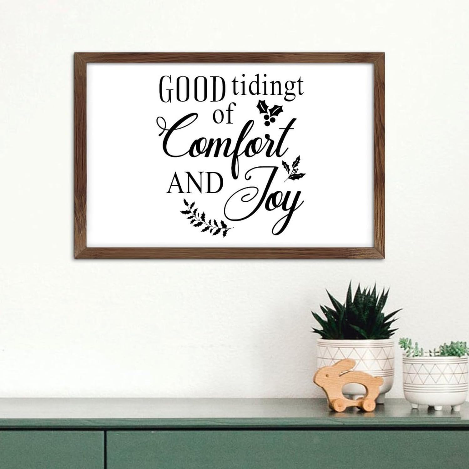 Good Tidings of Comfort And Joy Family Wall Art Decor Signs Distressed Framed Wooden Sign Decorative Wood Framed Printed Sign Home Decor for Room Entryway 16x20in