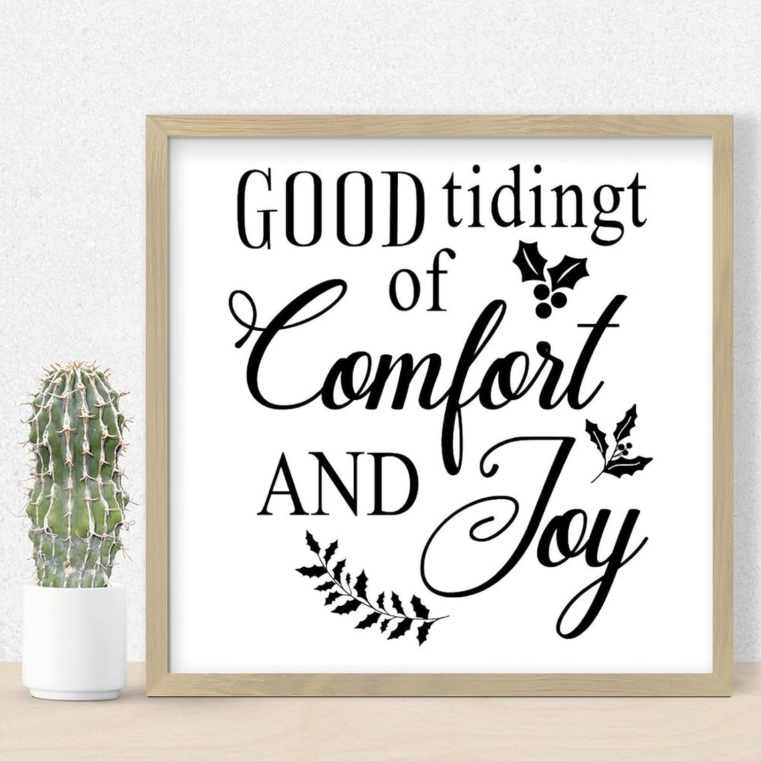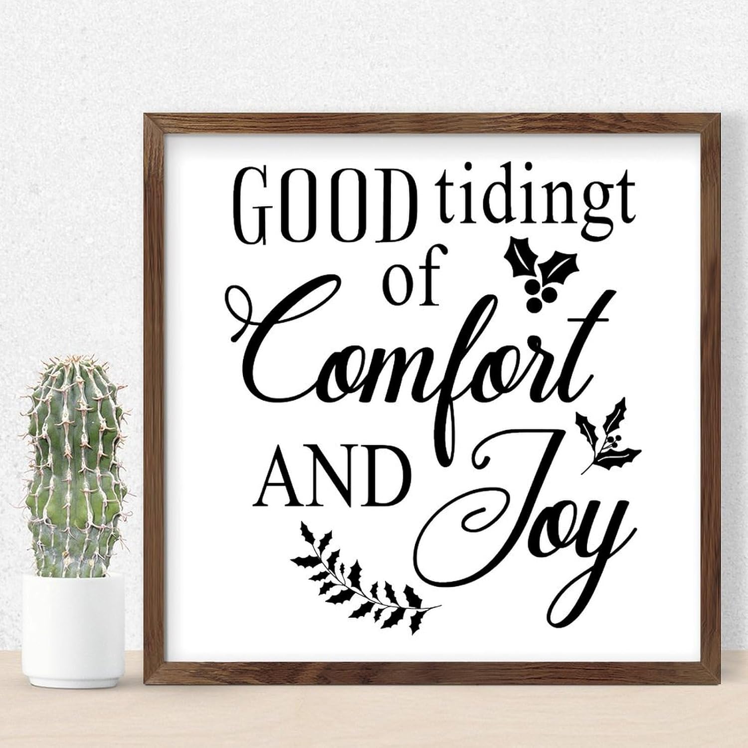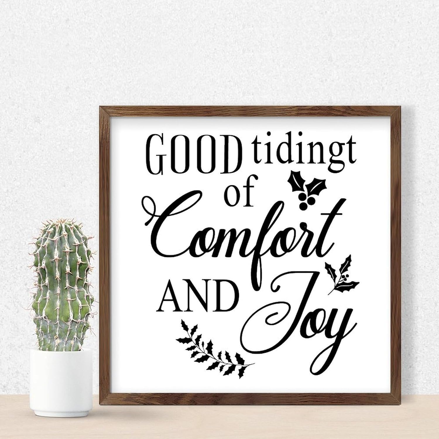 Good Tidings of Comfort And Joy Family Wall Art Decor Signs Distressed Framed Wooden Sign Decorative Wood Framed Printed Sign Home Decor for Room Entryway 16x20in