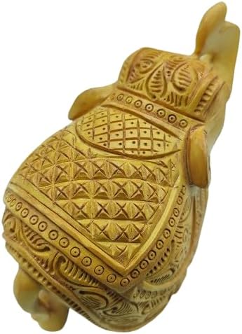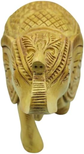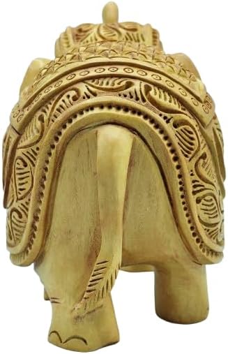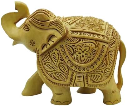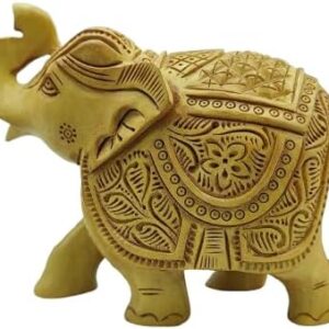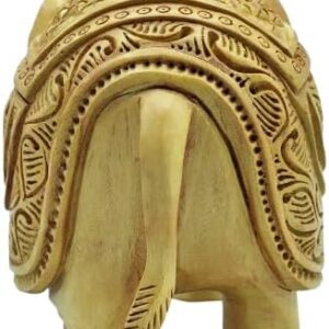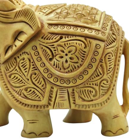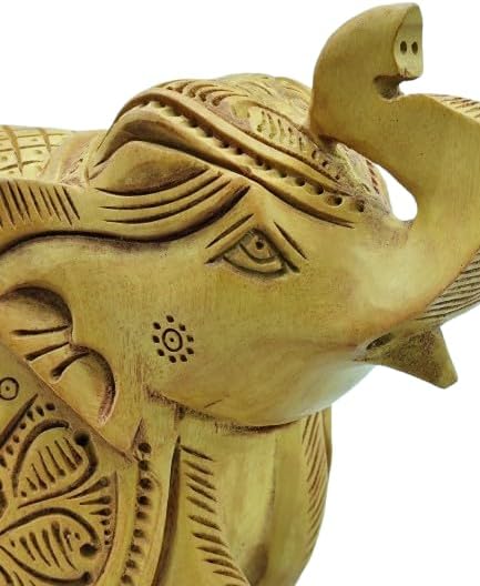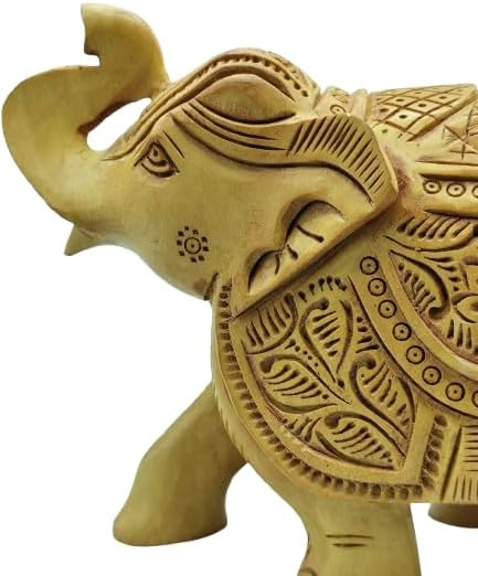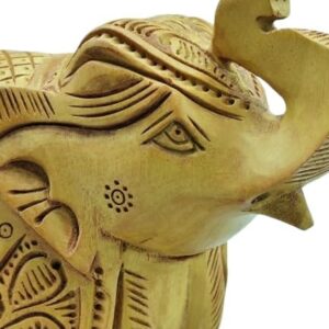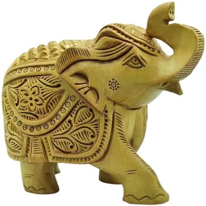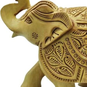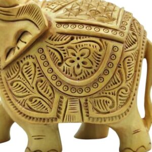 Handcrafted 5″ Wooden Elephant Statue – Intricate Carving, Natural Wood Finish, Good Luck Boho Decor for Home, Office & Living Room, Elegant Shelf Display, Handmade African Figurine