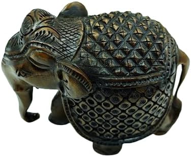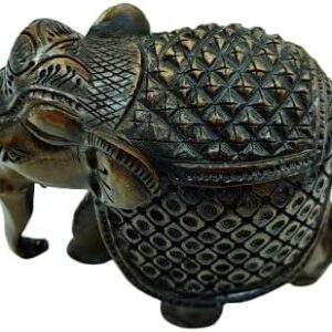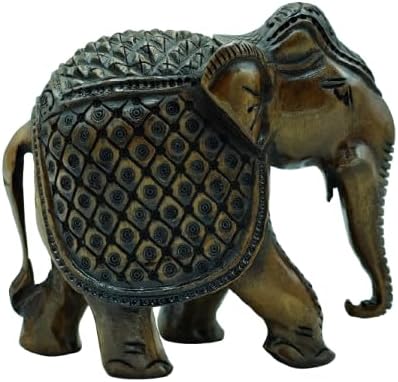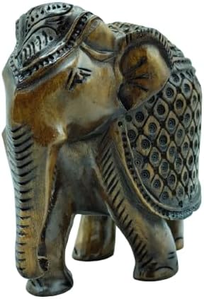 Handcrafted Wooden Carving Elephant Statue – 5″ Good Luck African Boho Handmade Elephant Figurine Decor for Home, Office & Living Room, Natural Wood Finish, Elegant Shelf Decoration
