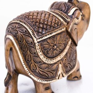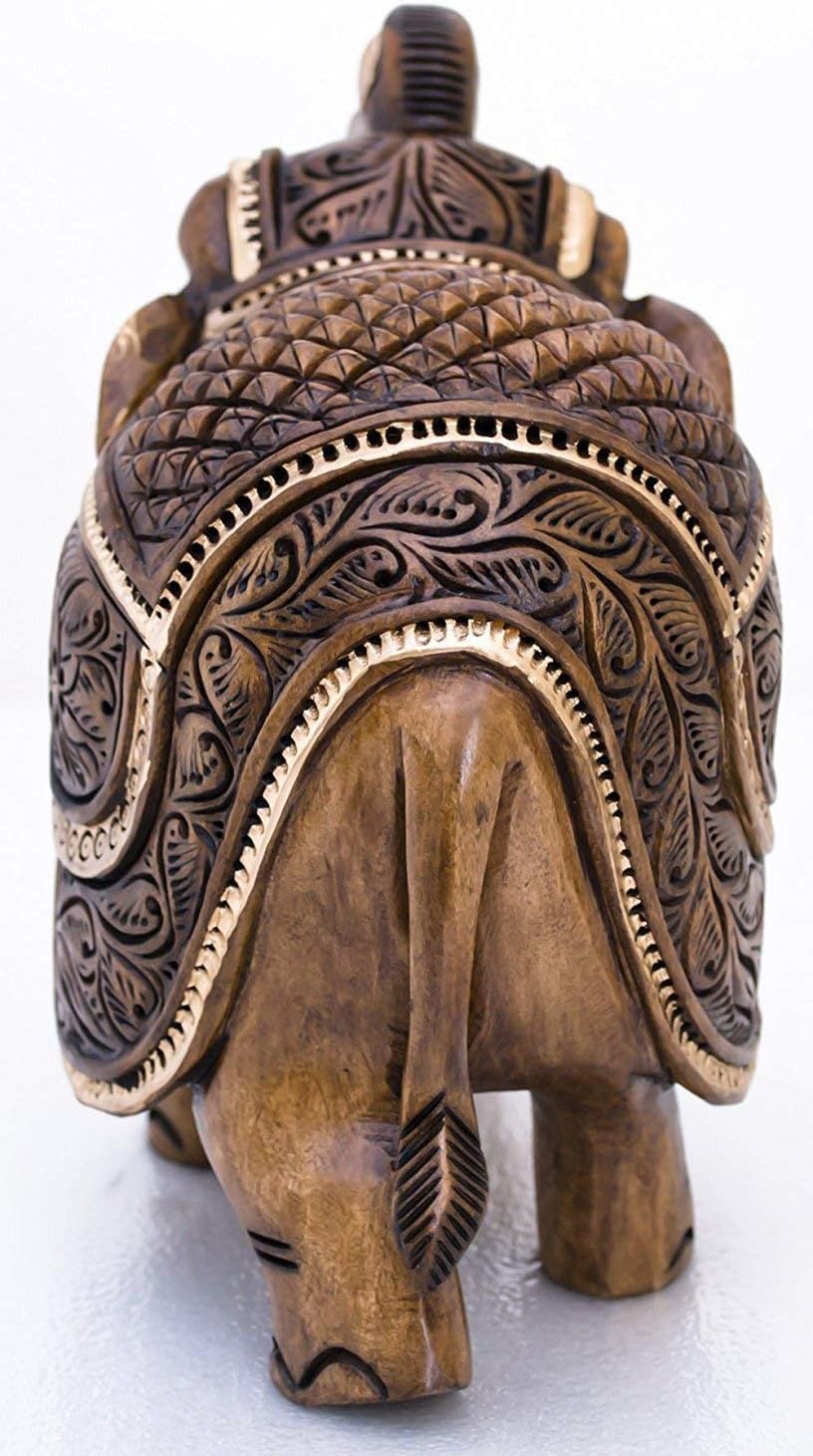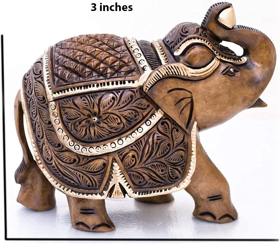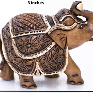 Handicraft Wooden Elephant Idol Feng Shui Good Luck Statue Handmade 3 Inches Home Decor with antiq Look Gift and Temple Pooja by Indian Collectible