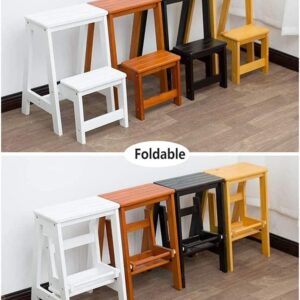 - SPECIAL DESIGN: Wooden stepladder use foldable design, easy to store, not taking up space, ensuring stability on any surface