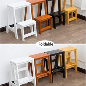 Household Goods 2 Steps Folding Step Ladder Wooden Ladder, Home Interior Stair Step Stool, Wooden Kitchen Step Chair Maximum Load Bed Step Stools for High Beds 150kg