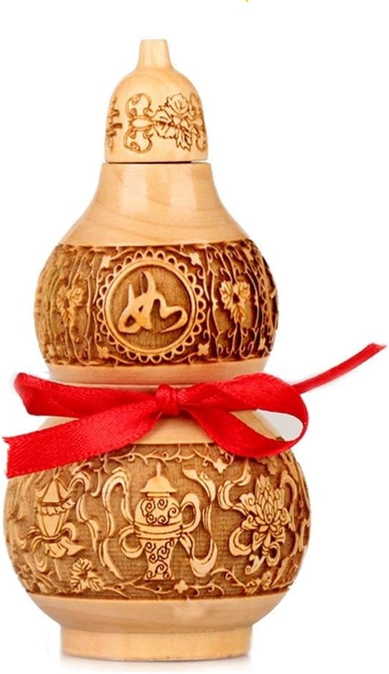 PEAKSEE Fortune Ornament Feng Shui Chinese Peach Wood Gourd Chinese Wu Lou Good Luck Wooden Gourds Ornaments Decoration Home Crafts Treasure and Ornaments Fortune Pendulum(B)
