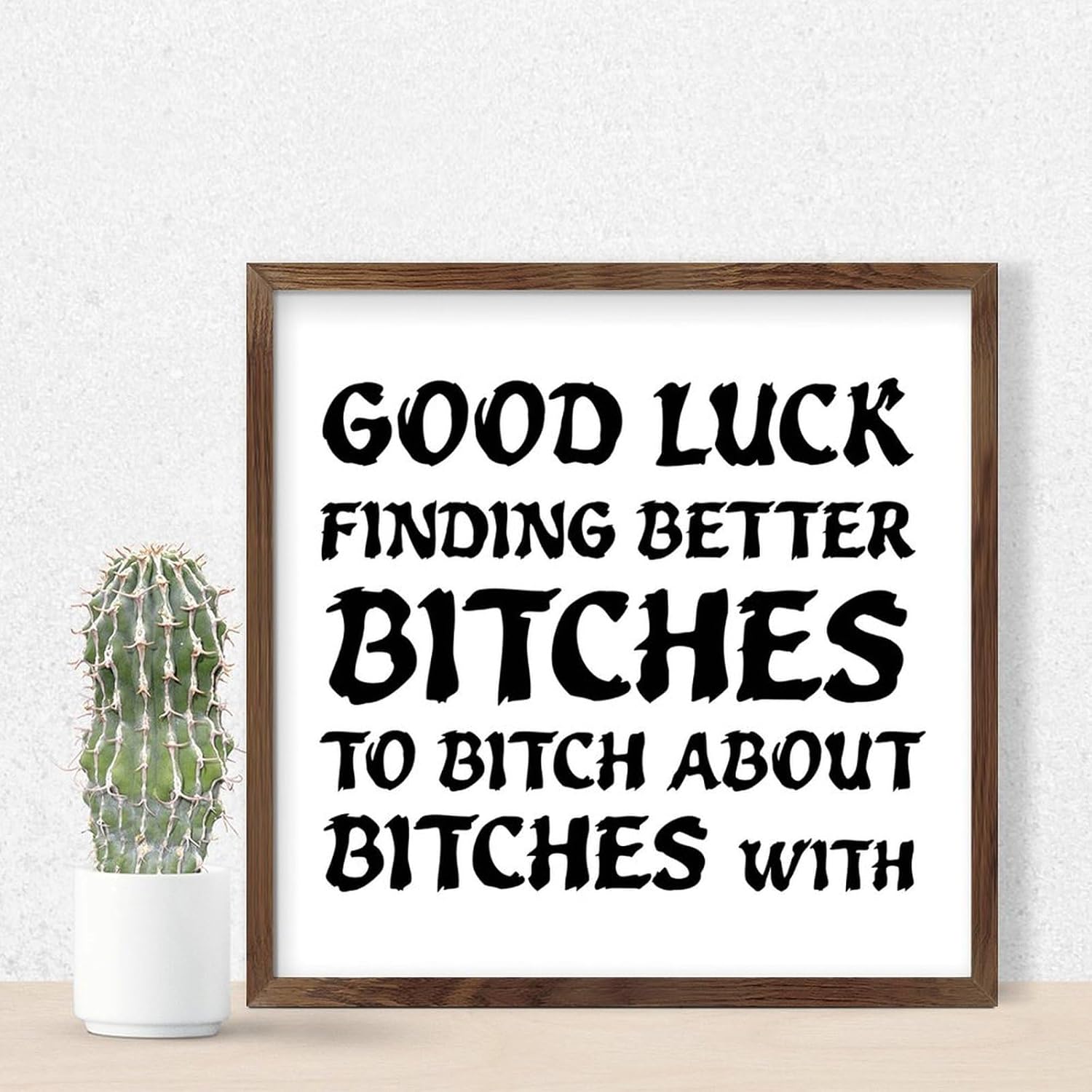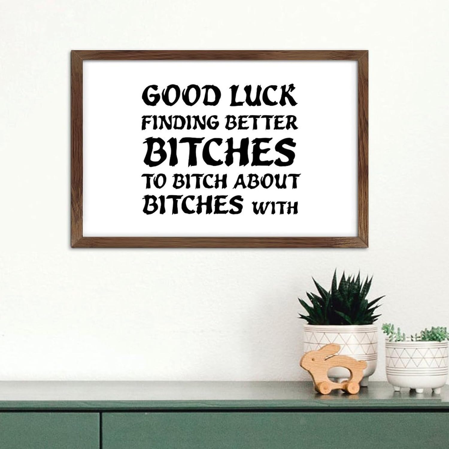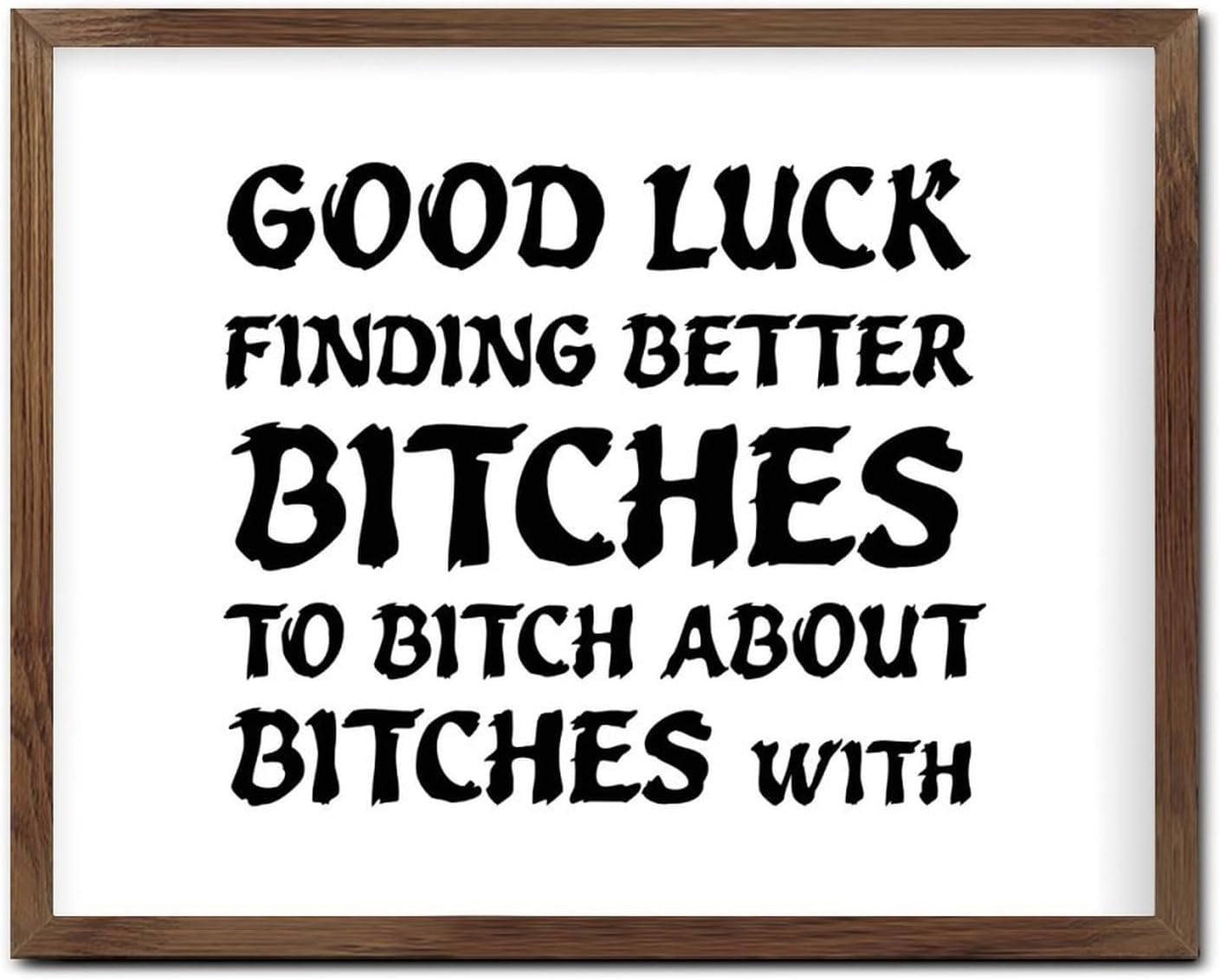 Personalized Home Décor Framed Wood Sign Plaque Good Luck Finding Better Bitches Antique Wall Art Wood Plaque Sign 16x20in Wooden Hanging Signs for Offices Porch