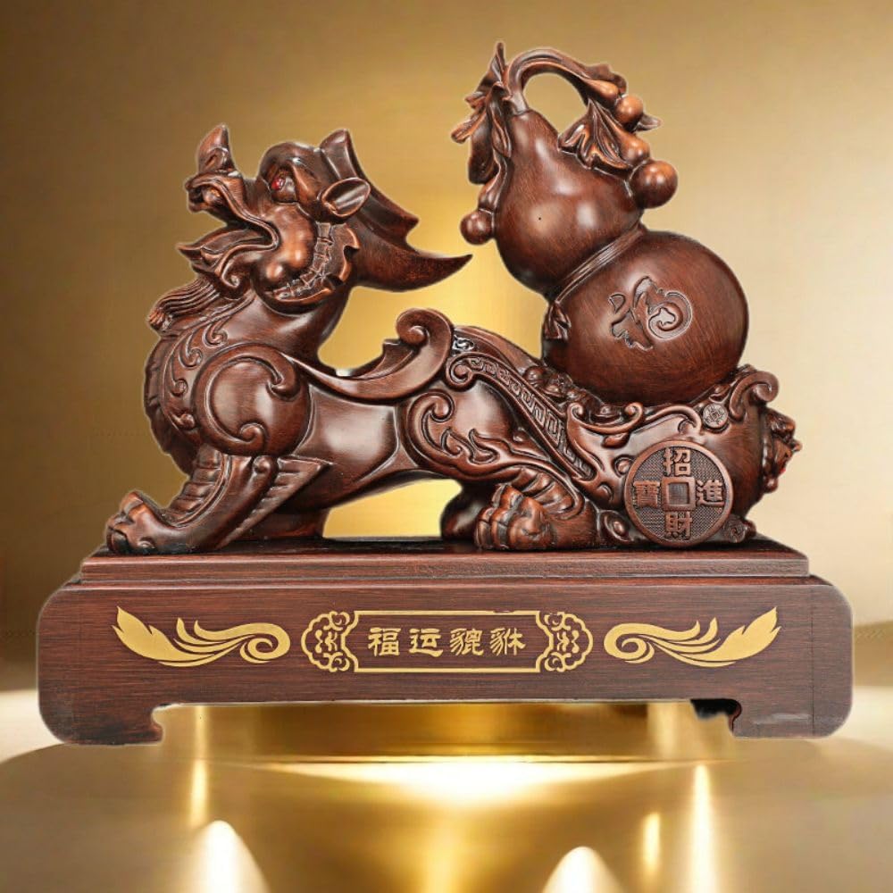 - 大号福运 pi yao sculpture Golden Home Decoration Figurine 貔貅(木纹色) – Delivery style, accept note size color style