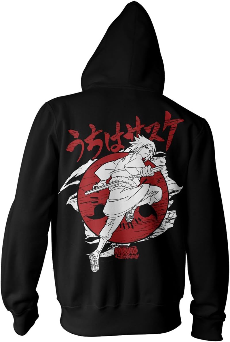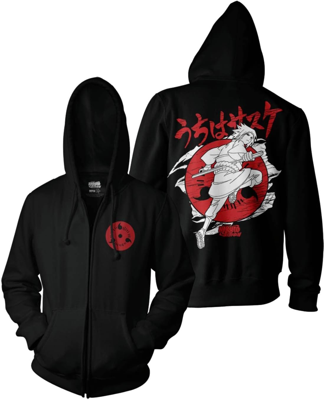 Ripple Junction Naruto Shippuden Adult Zip Hoodie Sasuke Sharingan Anime Sweatshirt Officially Licensed