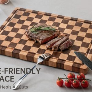 THETCHRY Cutting Boards for Kitchen, Checkered Cutting Board Upgraded, Acacia Wood Chopping Board with Juice Grooves & Handles, Large Butcher Block Serving Tray with Gift Box, 16.5″ x 11.6″ x 0.8″