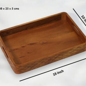 Vesta Homes Acacia Wood Serving Tray for Home\/Kitchen\/Restaurant\/Office Organizer\/Dining Table | Premium Serving Trays | 38 x 25 x 5 cm | Handcrafted in India