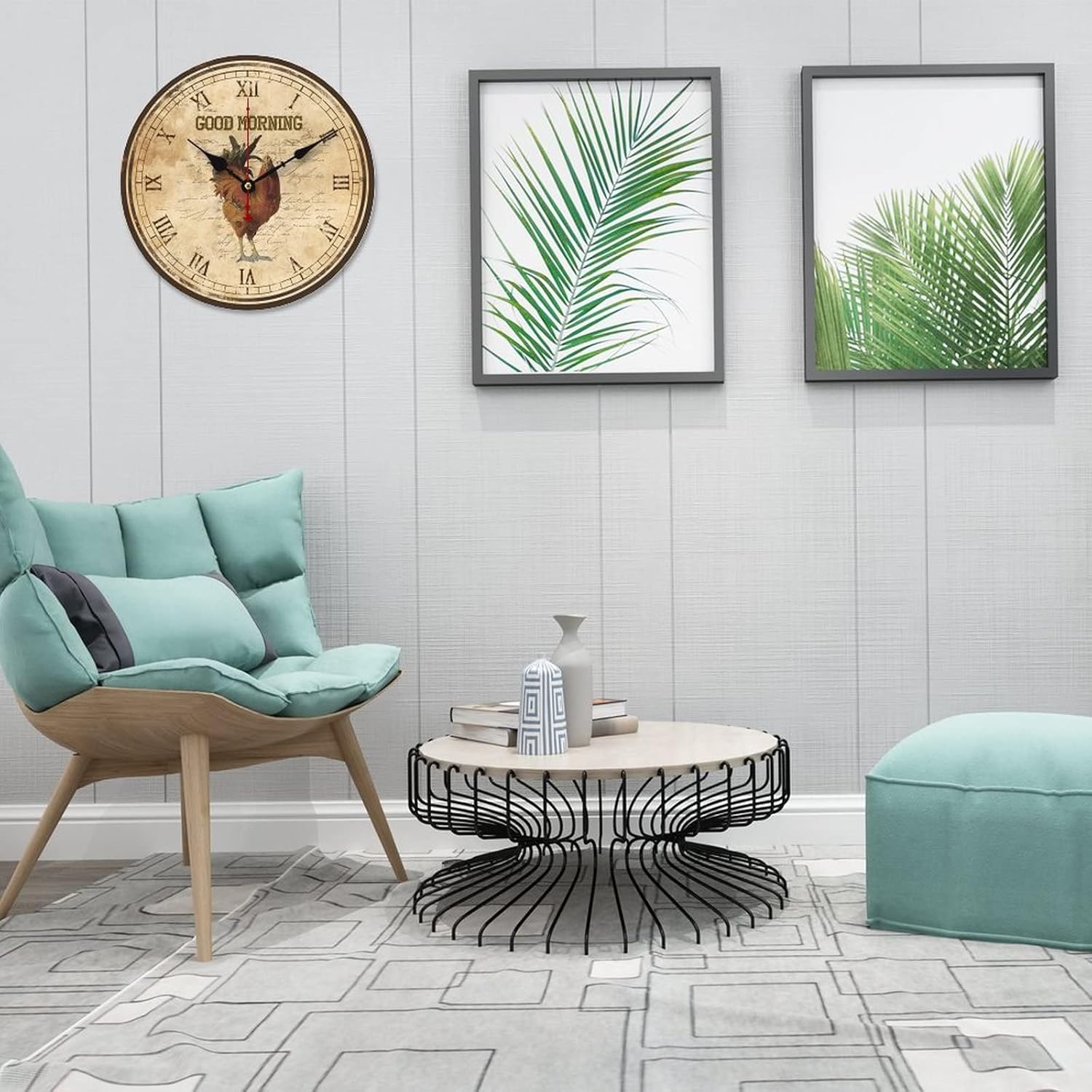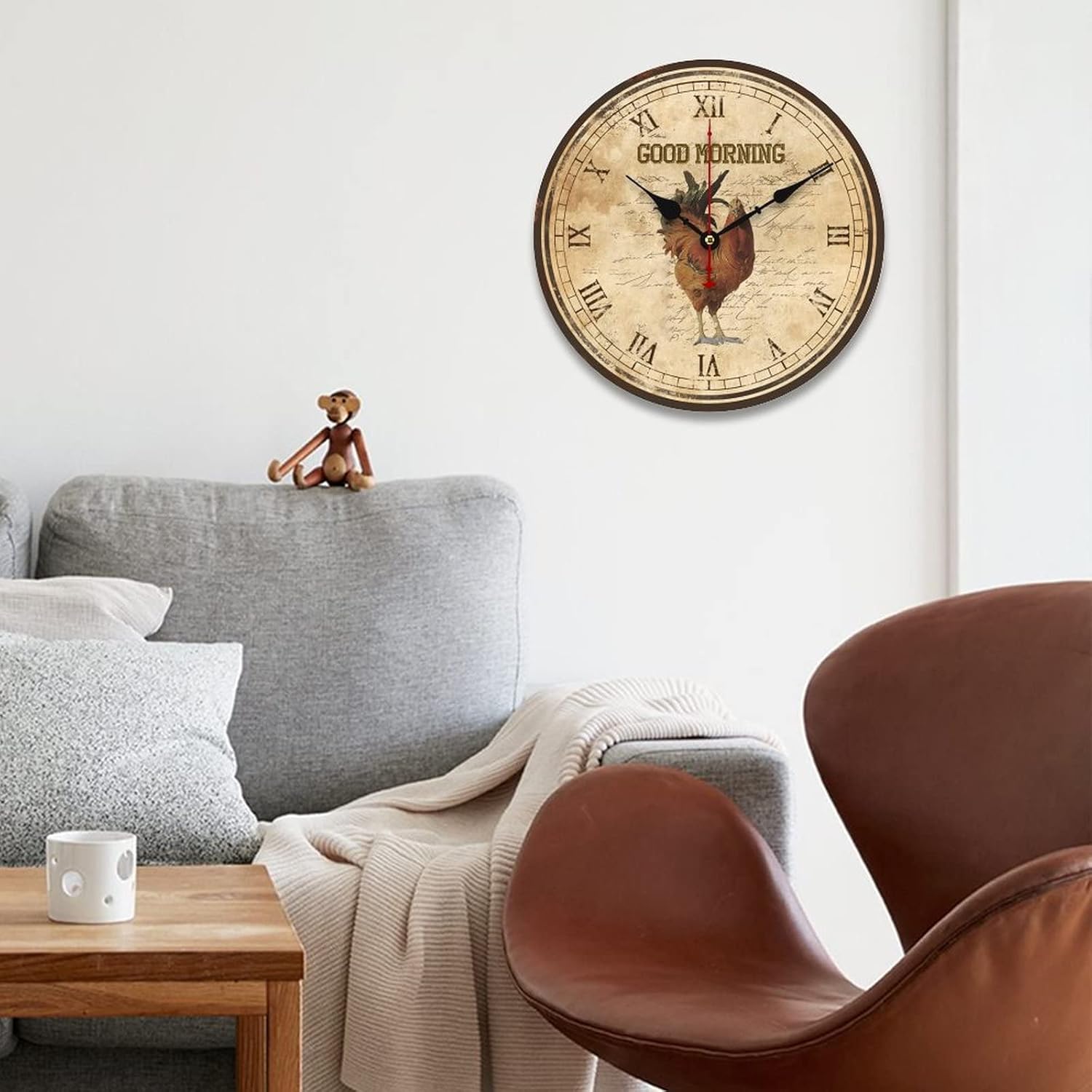 WengBeauty Good Morning Rooster Wall Clock Early Bird Design Wooden Round Clock Rustic Farmhouse Decorations – Rooster Decor Silent & Non-Ticking Home Decor for Kitchen 15″x15″