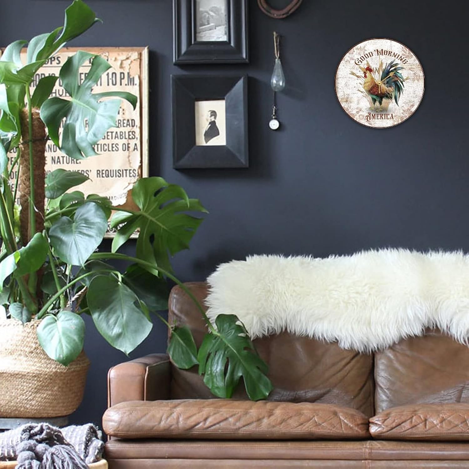 WengBeauty Rooster-Good Morning America Wall Clocks Farm Bird Rooster Wooden Round Clock Farmhouse Chicken Lover Gift Silent Non-Ticking Home Decor for Kitchen Bedroom 15×15 inches