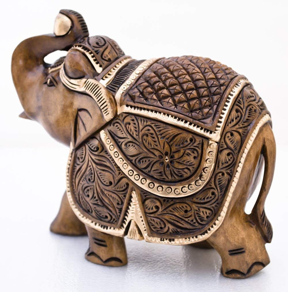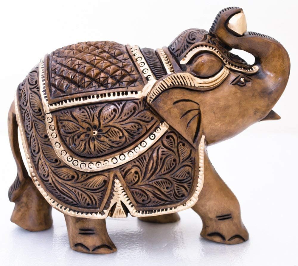 Wooden Elephant Idol Feng Shui Good Luck Statue Handmade 3 Inches Home Decor with antiq Look Gift and Temple Pooja I Home Decor I showpiece I Gifts for Housewarming by Indian Collectible
