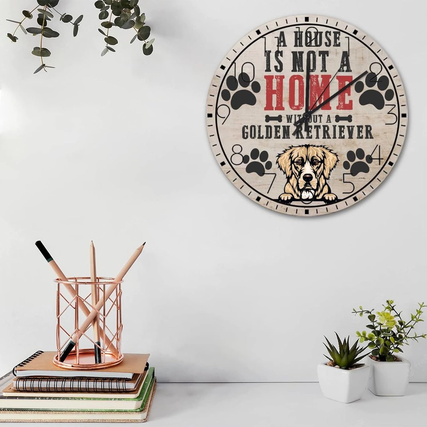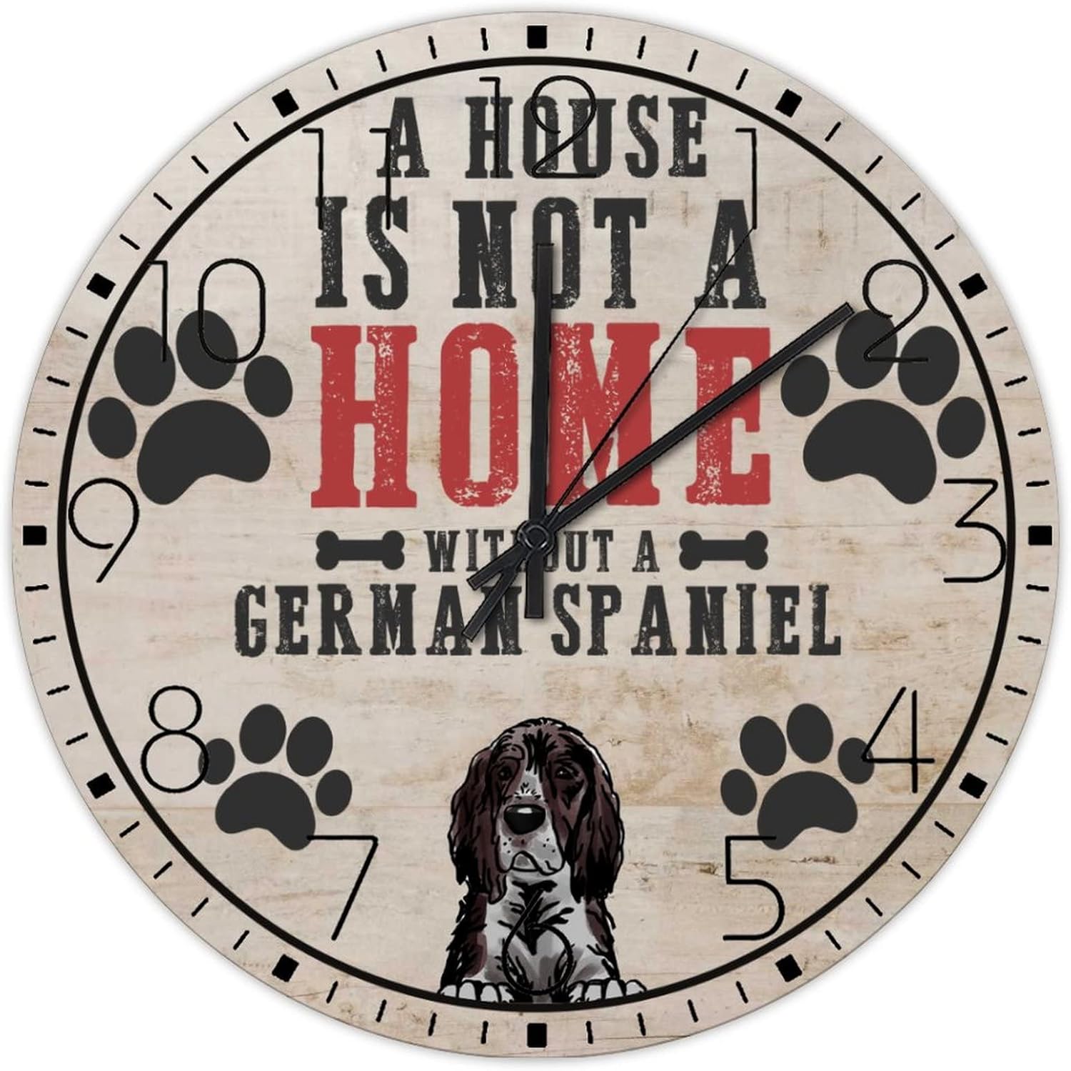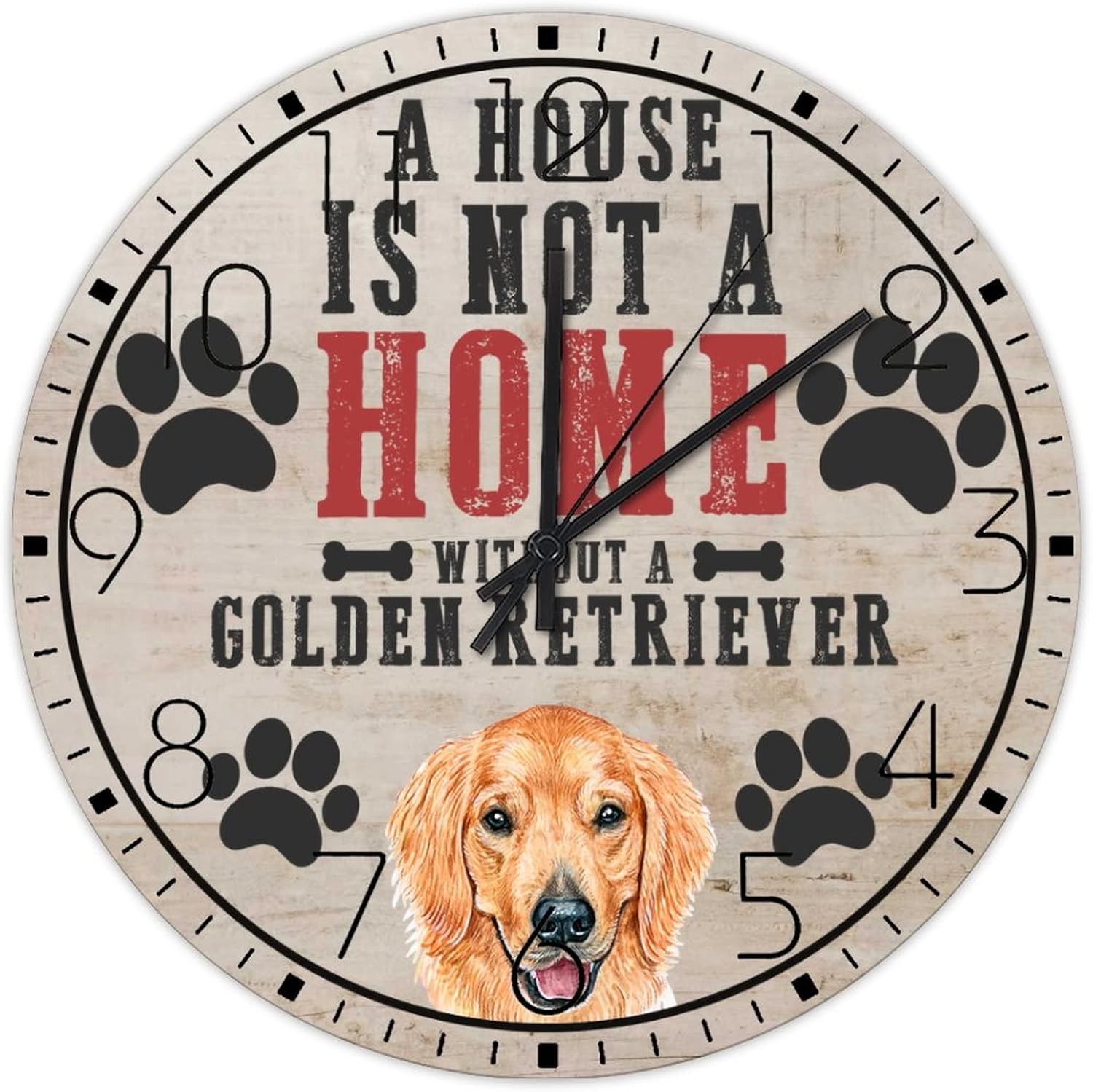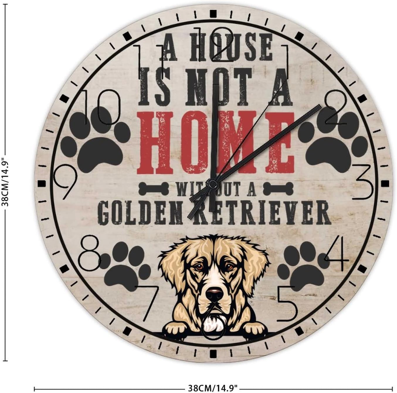 Wooden Wall Clock Analog Round Non-Ticking A House is Not A Home Without A Dog Personalized Wall Clocks Pet Owners Good Friends Wall Decor for Family Room Living Room Above Fireplace 15 Inch